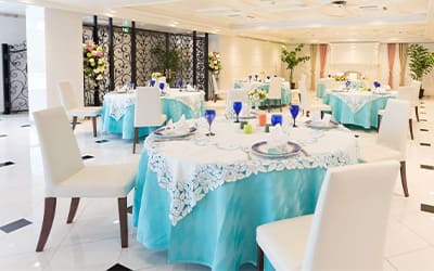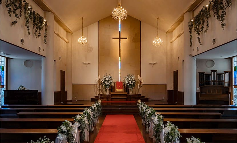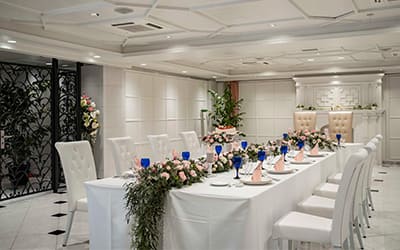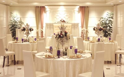 格式ある佇まいと温かさが調和する【岸和田グランドホール】では、チャペルでのセレモニーから、広々としたバンケットでのパーティーへと流れるように移動できる動線が設計されており、ゲストを第一に考慮したおもてなしと上質さを両立させた一日が実現できると人気です!